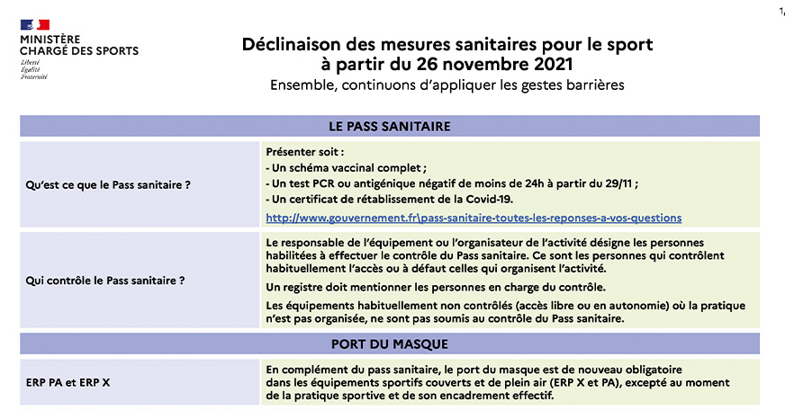 Retrouvez les mesures concernant le Pass Sanitaire dans le sport et le hockey à partir du 26 novembre 2021.