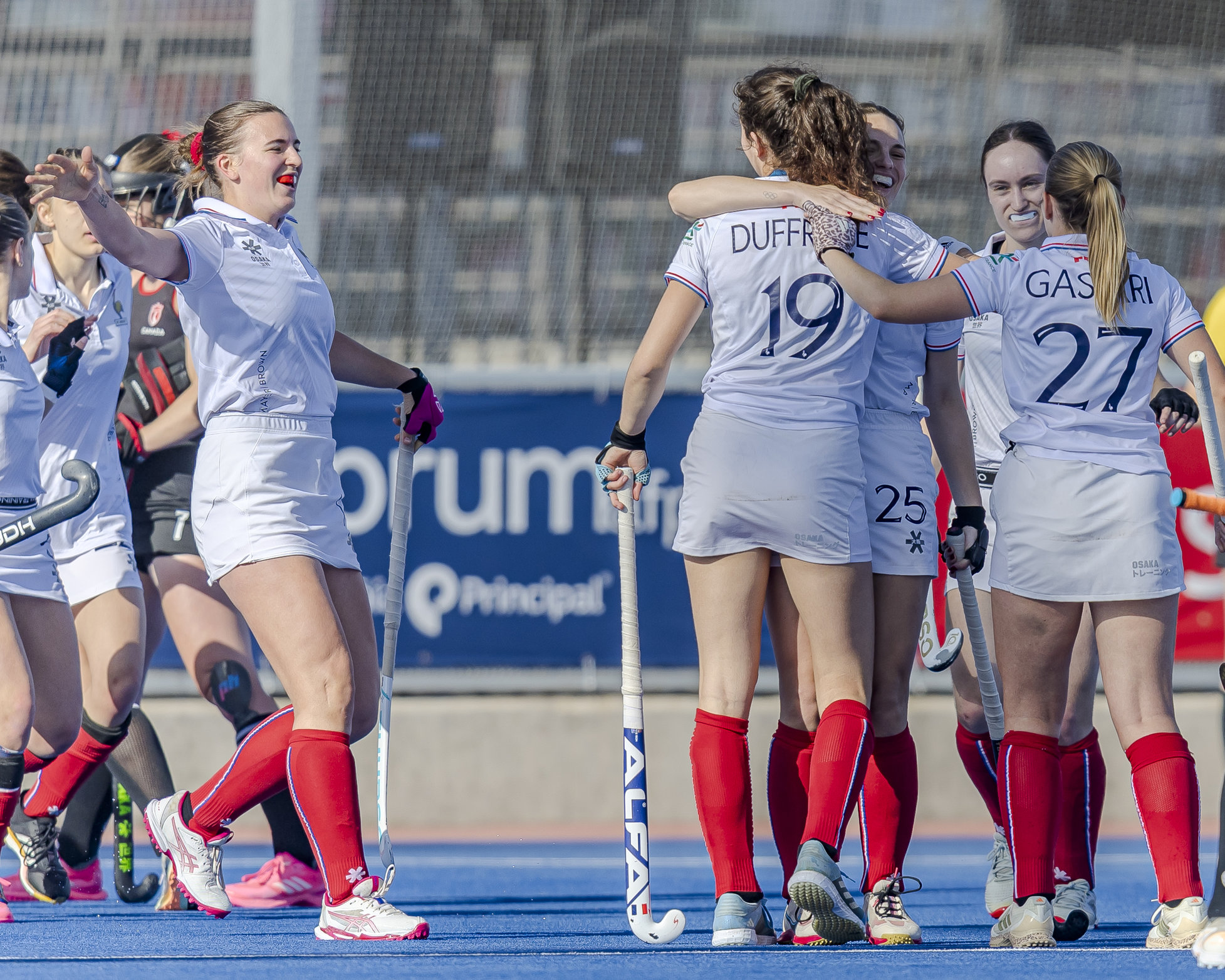Dans le dernier quart, les Canadiennes tentent de réagir, mais les Bleues maintiennent leur pression, ne lâchent rien et assiègent le but adverse. Un PC à la 50e minute est dévié juste à côté par Eve Verzura, mais Pauline Varoqui concrétise un déboulé sur la gauche de Yohanna Lhopital en reprenant la balle face au but vide (3-0, 52e). Il n’y a plus qu’une seule équipe sur le terrain et Mickaela Lahlah rate une reprise d’un cheveu, juste avant que Maiwen Cadiou ne voie son tir détourné par un superbe arrêt de la gardienne canadienne (53e). Les Bleues sont intenables et pratiquent un hockey technique et athlétique. Petite frayeur à quatre minutes de la fin, mais la balle est bien bloquée par Lucie Ehrmann. Malgré un dernier tir sur le poteau de Delphina Gaspari à la 57e minute, plus rien ne sera marqué et la fin du match est sifflée sur cette magnifique victoire des Bleues, 3-0.