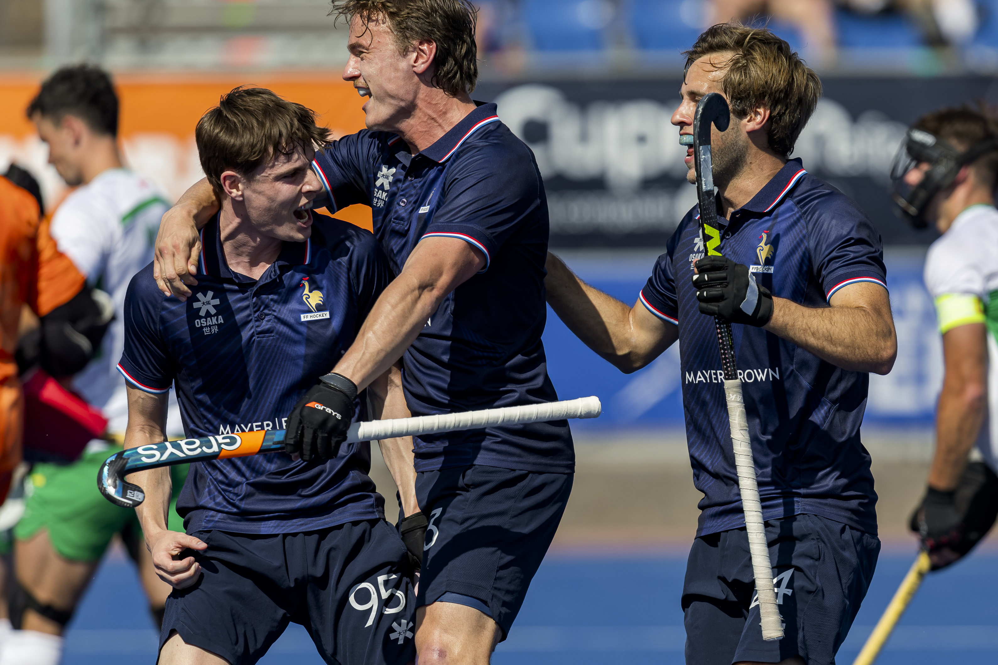 Les Français reprennent la maîtrise de la balle dans le dernier quart, mais les Irlandais ne lâchent rien et luttent sur toutes les balles. Le fameux fighting spirit face à ce qui ressemble à une attaque-défense des Bleus, qui tentent d’emballer leur jeu. Mais les Irlandais procèdent en contre, comme sur cette action à la 56’ qui se termine sur la planche extérieure. Le coach français fait sortir le gardien pour tenter une pression à 11 joueurs de champ, et cela fonctionne : les Bleus obtiennent un corner à 1’40 de la fin, parfaitement bloqué au ras du poteau par Jamie Carr. La pression est française : nouveau PC cette fois à 42 secondes de la fin, mais Brieuc Delemazure trouve le poteau extérieur. Enfin, un nouveau corner français à 3 secondes du coup de sifflet final est à nouveau bloqué… La fin du match est sifflée sur cette victoire 2 buts à 1 pour l’Irlande.